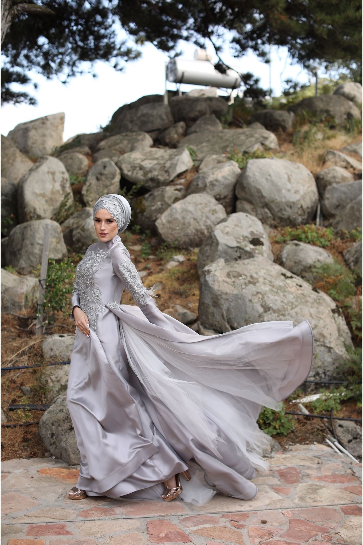 Nadide Pelerinli Abiye Gri
