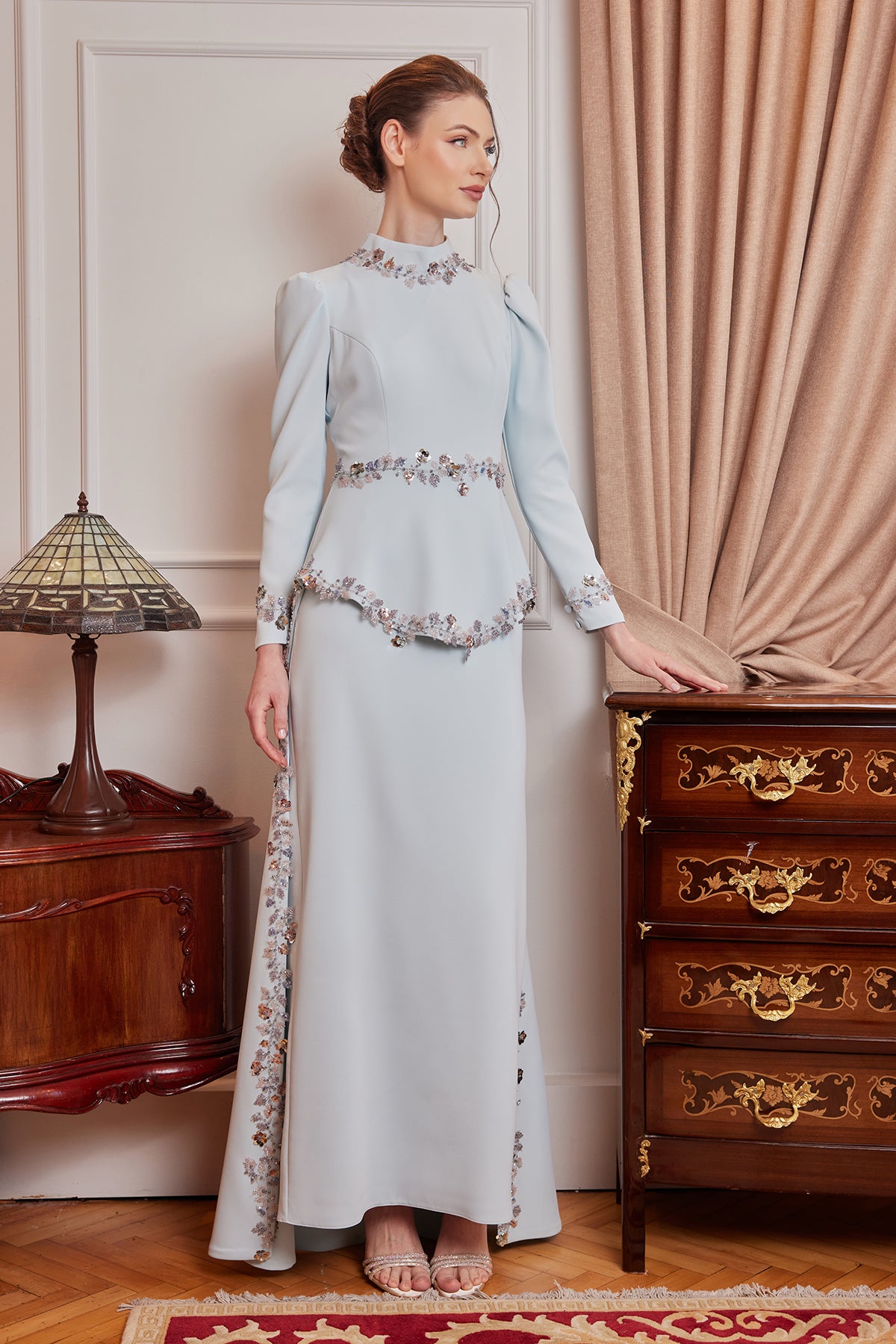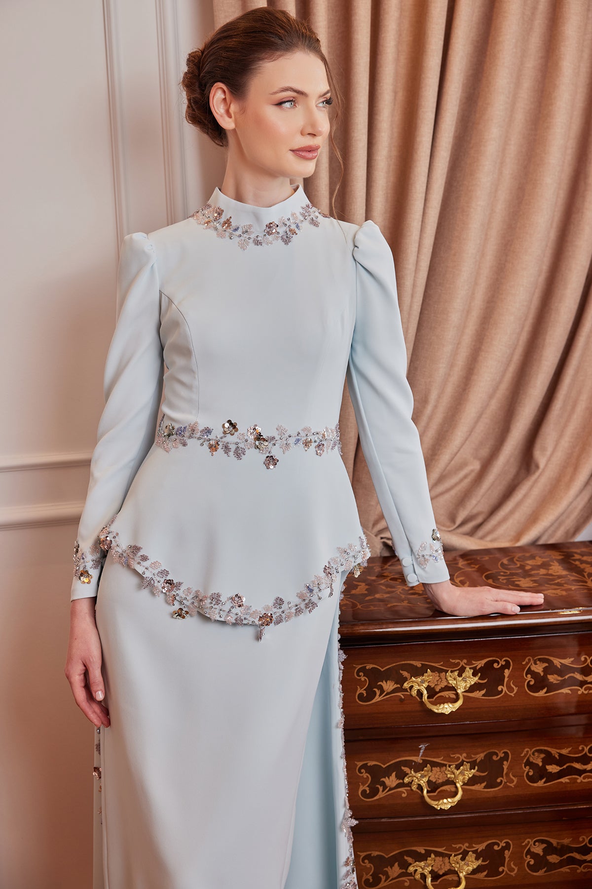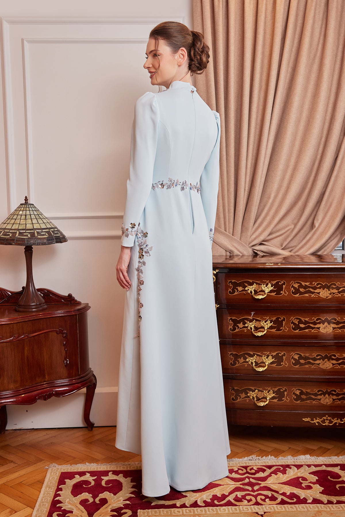Ferah gökmavi tonunun romantik çiçek işlemeleriyle buluştuğu Selena Abiye Gökmavi, zarafetini modern çizgilerle yansıtmak isteyen kadınlar için kusursuz bir seçimdir. My Dreams Collection farkıyla özel günlerinizde ışığınızla ön plana çıkın.