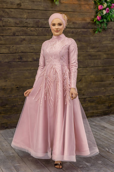 Our specially designed products are designed to make you feel special on your most special occasions. The Diana Evening Dress will make you shine like a star with its sparkling embroidery on special occasions like weddings, engagements, henna nights, proms, and graduations. Its silky lining will also make you feel incredibly comfortable.