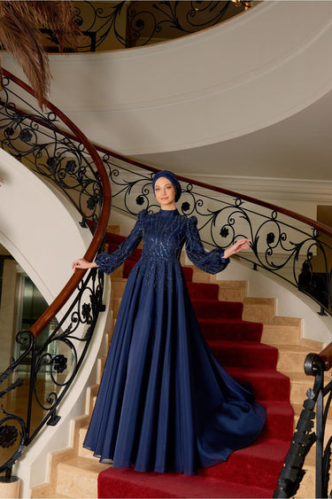 Stands Out with Its Elegant Design : The Adelina hijab evening dress dazzles with its elegance. Its special design is meticulously crafted in every detail. Every stitch emphasizes elegance and grace.