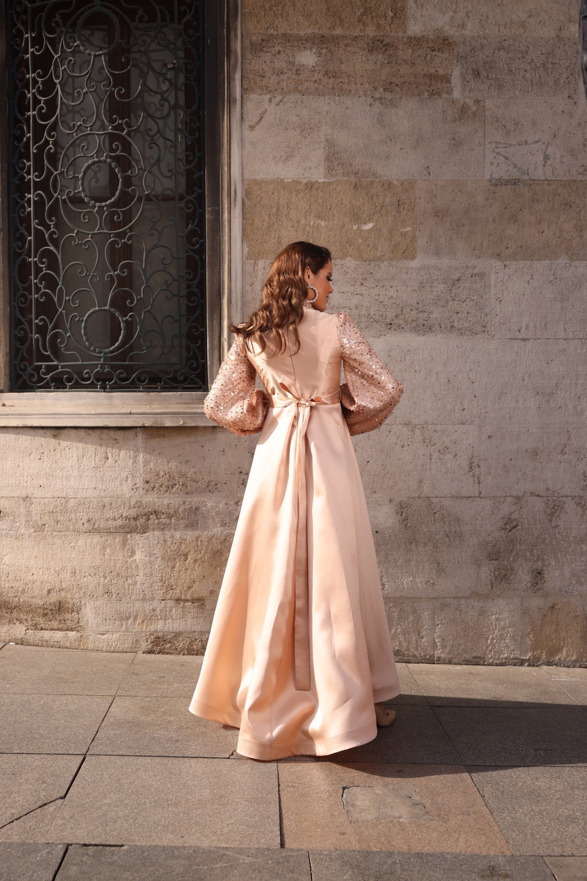 Our custom-designed products are designed to make you feel special on your most special occasions. The Veronika Evening Dress will make you shine like a star with its sparkling embroidery on special occasions like weddings, engagements, henna nights, proms, and graduations. Its silky lining will make you feel incredibly comfortable. Available in white, brown, copper, lavender, and lilac.