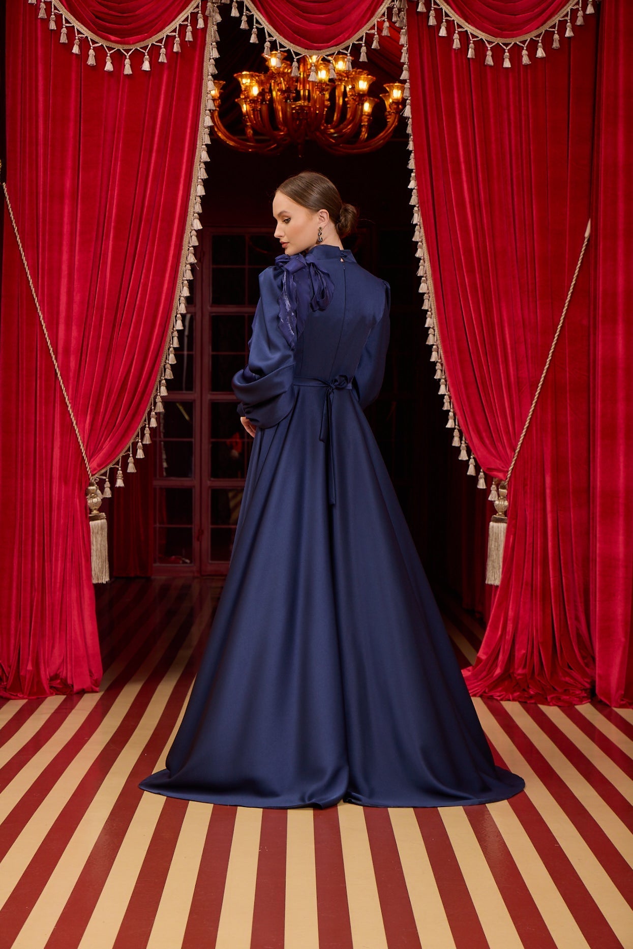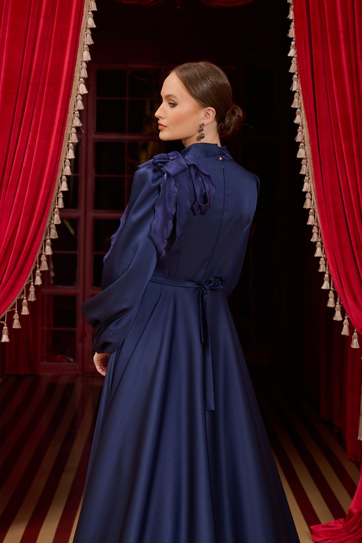 Discover a world of difference in our custom-designed evening gown, which exudes elegance and refinement in every detail. With lines and unique touches that transcend the ordinary, this gown is not just a garment; it's a work of art that allows you to express yourself.