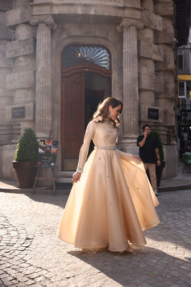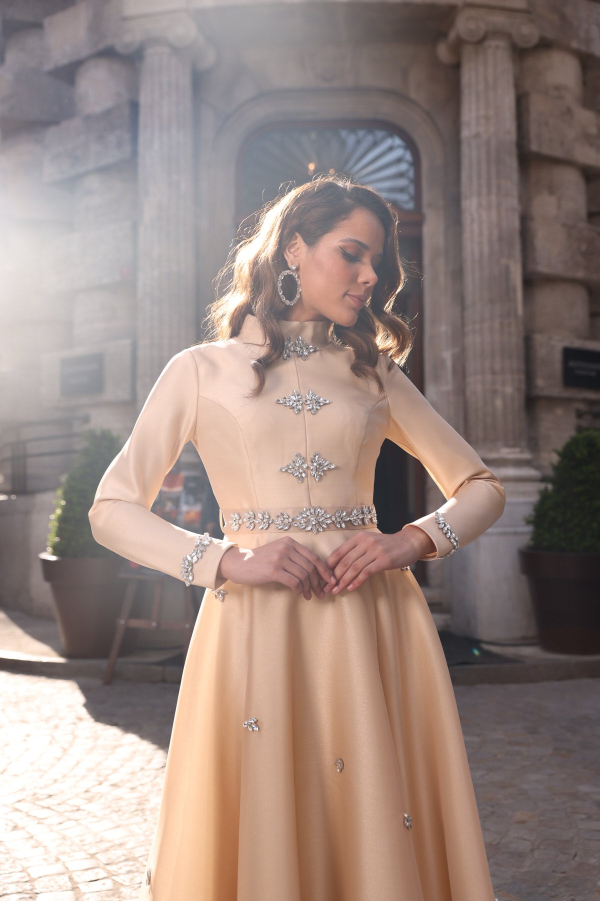 Our specially designed products are designed to make you feel special on your most special occasions. The Karmen Evening Dress will make you shine like a star with its sparkling embroidery on special occasions like weddings, engagements, henna nights, proms, and graduations. Its silky lining will make you feel incredibly comfortable. Available in Burgundy, Mint, Powder, and Gray.