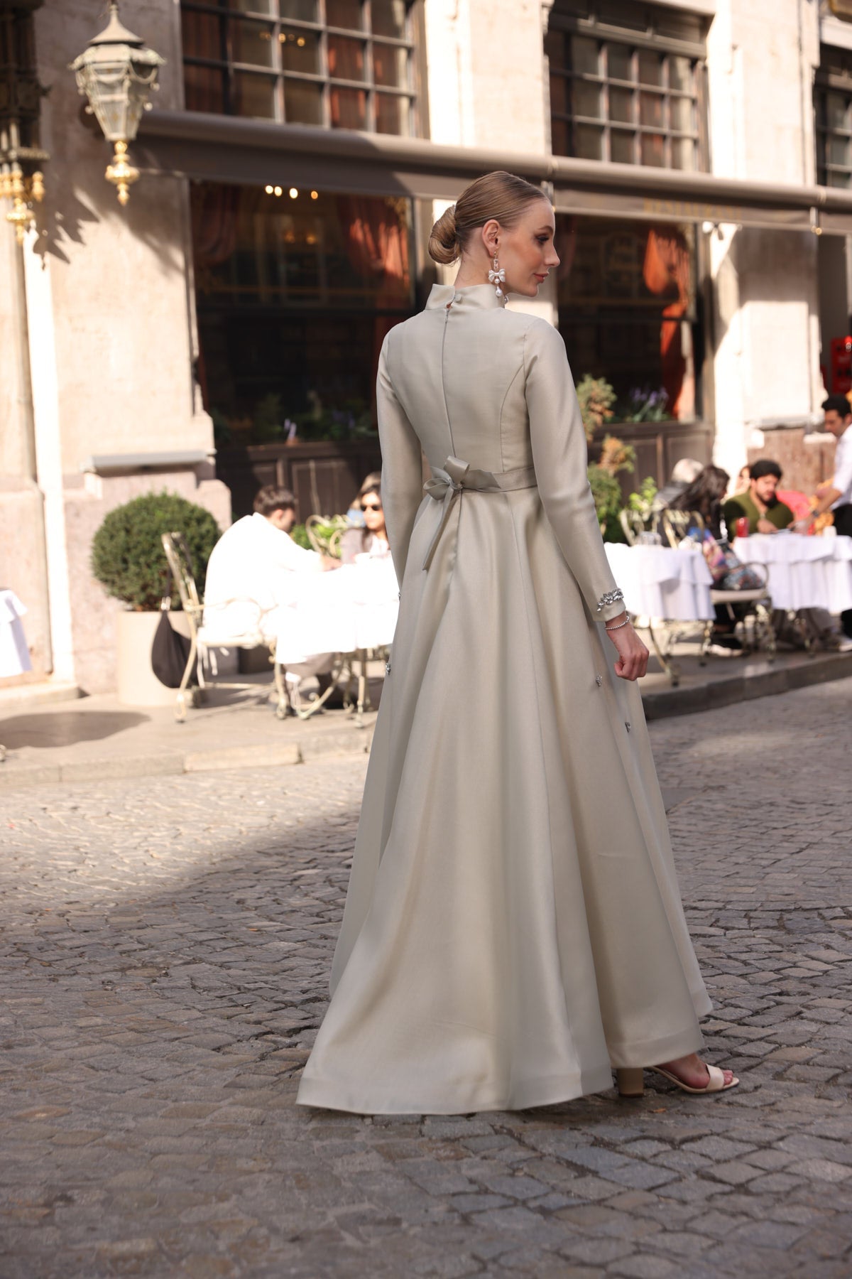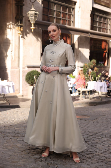 Our specially designed products are designed to make you feel special on your most special occasions. The Karmen Evening Dress will make you shine like a star with its sparkling embroidery on special occasions like weddings, engagements, henna nights, proms, and graduations. Its silky lining will make you feel incredibly comfortable. Available in Burgundy, Mint, Powder, and Gray.