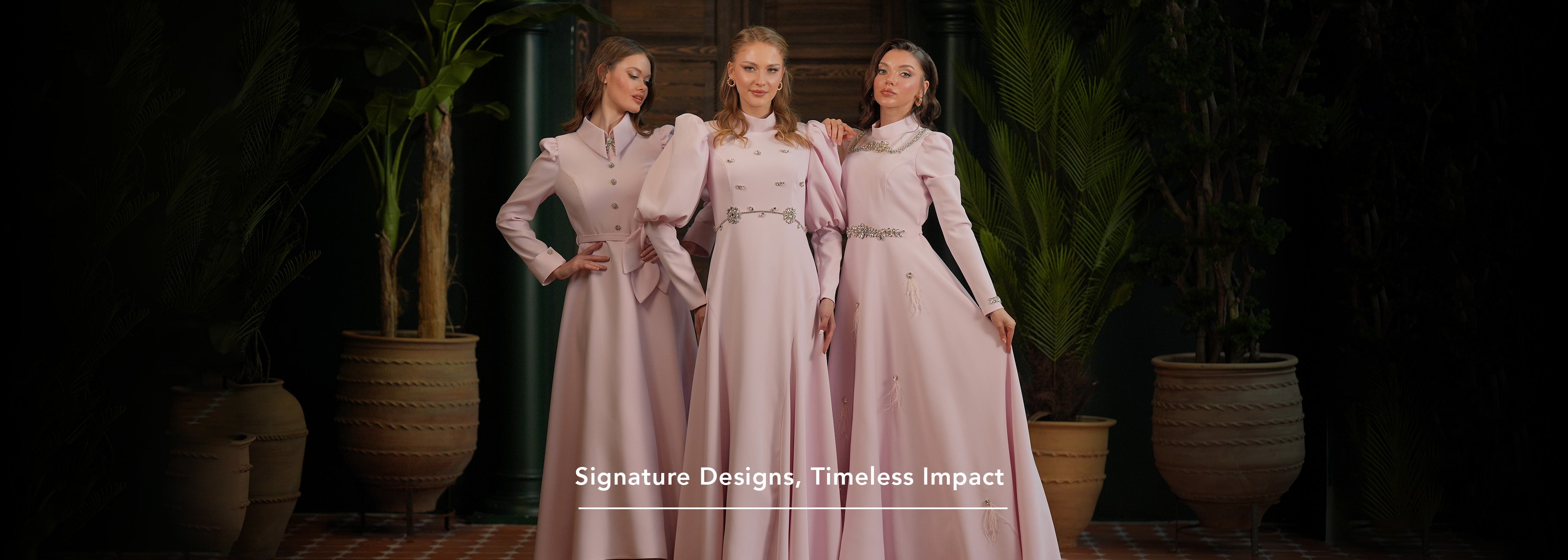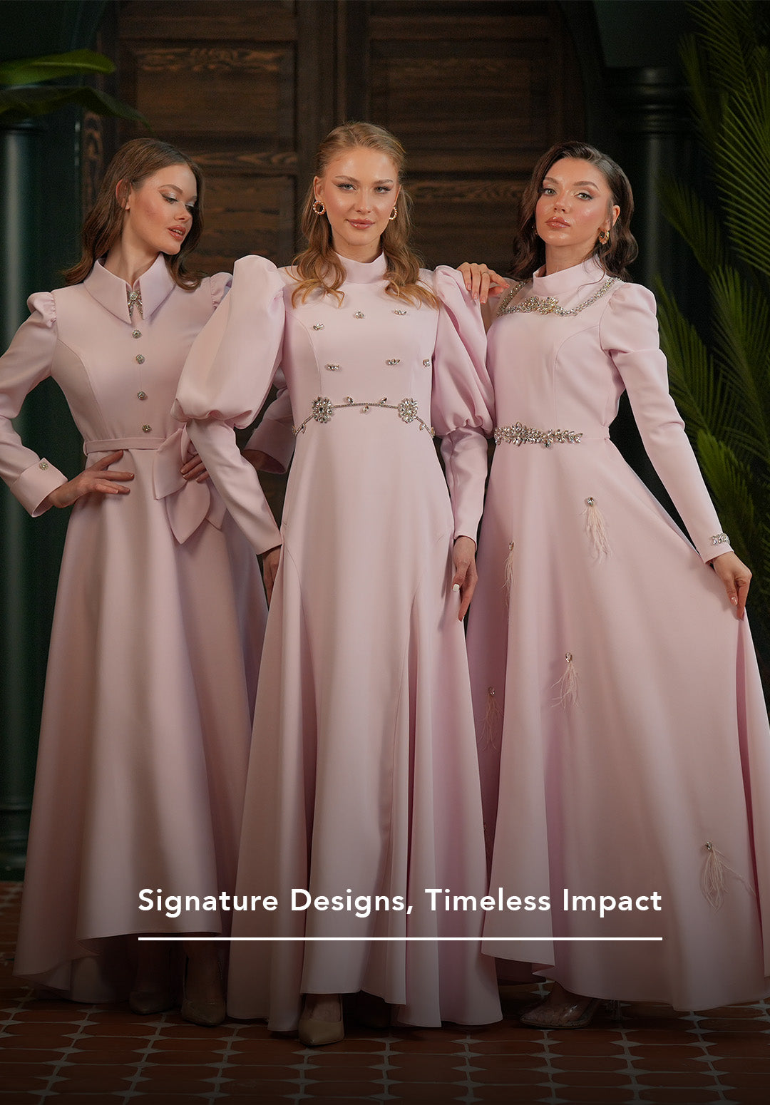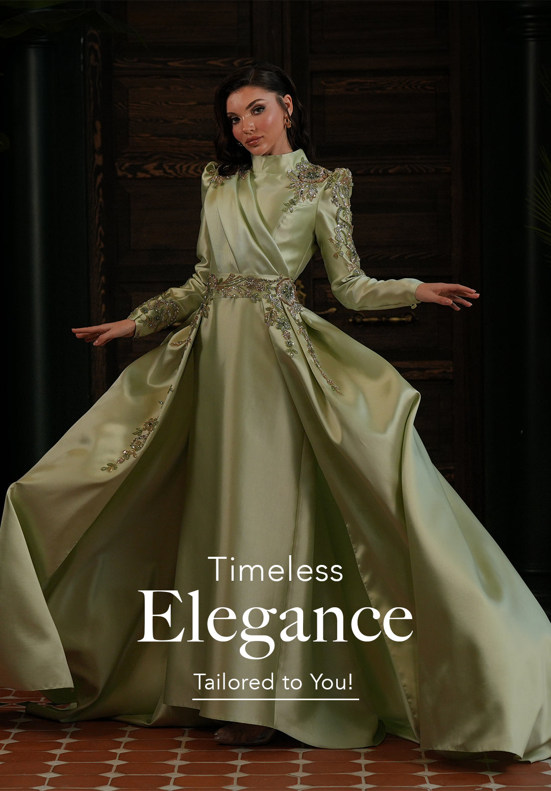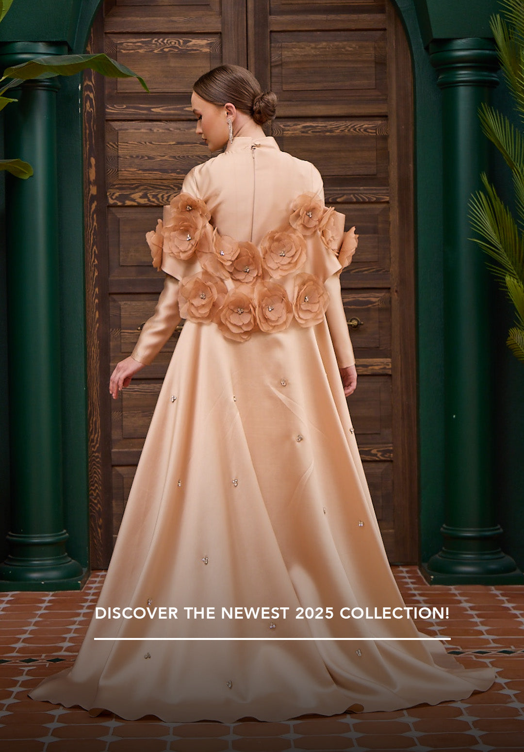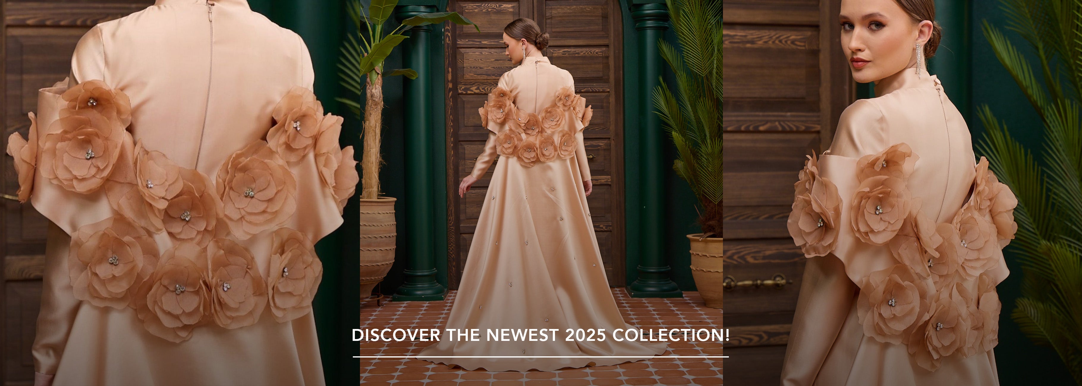 Koleksiyonlarımız; dört mevsim boyunca özel günlerde ve özel hissetmek istenen her anda, sadeliği ihtişamla buluşturur. Modern çizgiler, couture detaylar ve feminen silüetlerle öne çıkar.